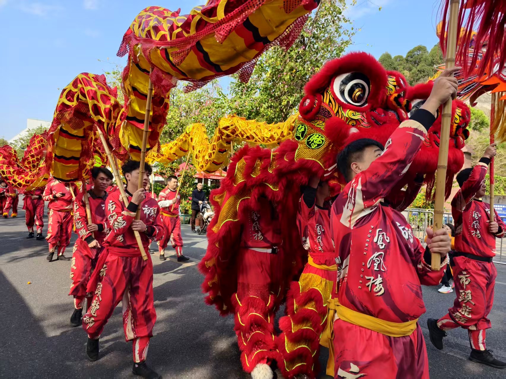 花街开市仪式在最具岭南年味的龙狮表演中拉开帷幕。仪式现场,醒狮腾跃、祥龙起舞,锣鼓喧天、喜气洋洋。