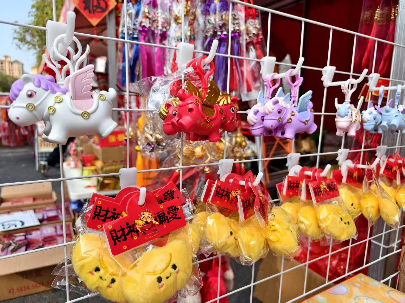 年宵花卉、民俗饰品、特色年货……南村花市现场精心布置了125个摊位,为市民送上一站式购物体验。“我已经连续十多年在南村花市摆摊了,一般开市4到5天人就多了起来。今天我们还把马年的特色年画、挂件摆出来了,欢迎大家前来购买。”一名摊主表示。